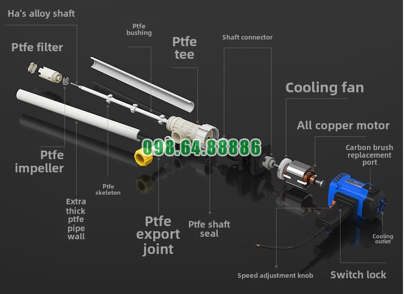 Trong cấu tạo của Bơm hút dầu nhớt thùng phuy JDT-3000W-PTFELG, ống bơm là bộ phận quan trọng tiếp xúc trực tiếp với chất lỏng trong suốt quá trình vận hành. Việc sử dụng vật liệu PTFE cao cấp cấu thành nên ống Bơm hút dầu nhớt thùng phuy JDT-3000W-PTFELG giúp thiết bị đạt được độ bền cao, khả năng chống ăn mòn tốt và vận hành ổn định khi bơm các loại dầu nhớt hoặc dung dịch công nghiệp.