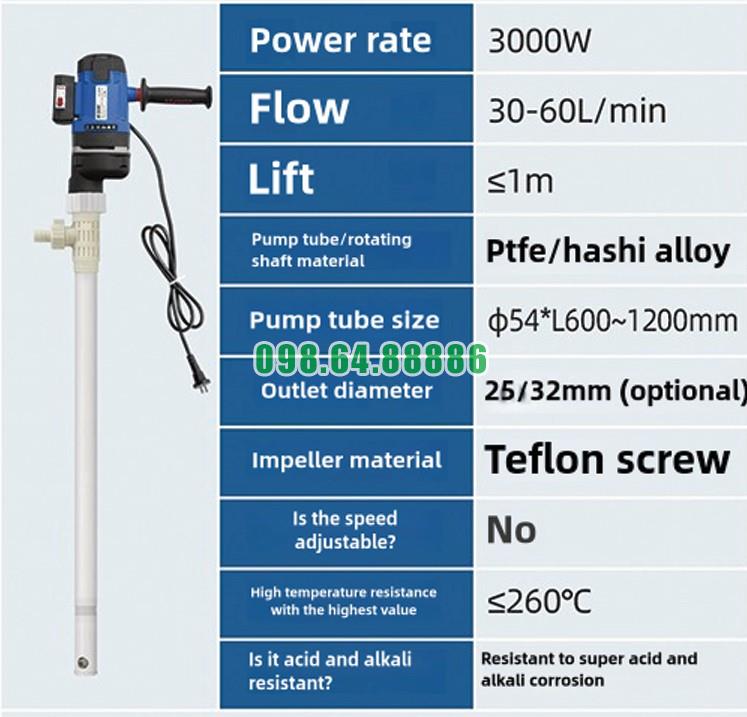 Bơm thùng phuy công suất 3000W JDT-3000W-PTFELG