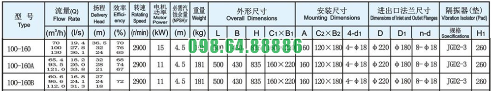 Máy bơm đa tầng cánh trục đứng, bơm tăng áp, bơm lùa ISG100-160A, IRG100-160A 11kw, 93.5m3, 28m