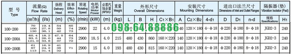 Máy bơm inline, bơm lắp thẳng trục đứng ISG100-200, IRG100-200 22kw, 100m3, 50m
