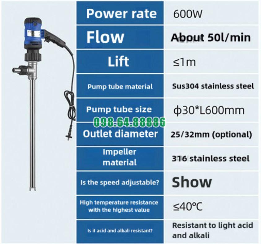 Bơm chất lỏng cắm điện JDT-600W-30SUS304