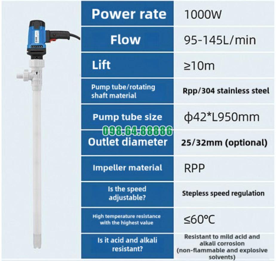 Bơm dầu cho thùng phuy - phuy 200L JDT-1000W-RPP