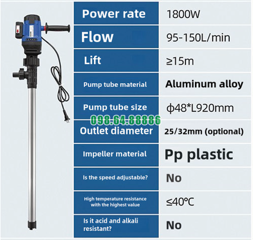 Sự vận hành ổn định không tiếng ồn của bơm điện thùng phuy cao cấp JDT-1800W-L92