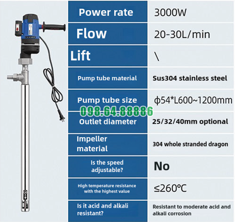 Bơm nhúng thùng phuy JDT-3000W-JLG260