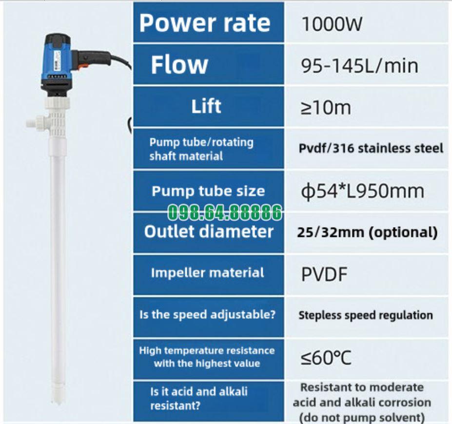 Bơm PVDF thùng phuy model JDT-1000W