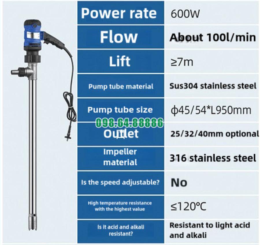 Với lưu lượng bơm đạt 60–120 lít/phút, JDT-G120-600W giúp rút ngắn đáng kể thời gian xử lý mỗi thùng phuy.