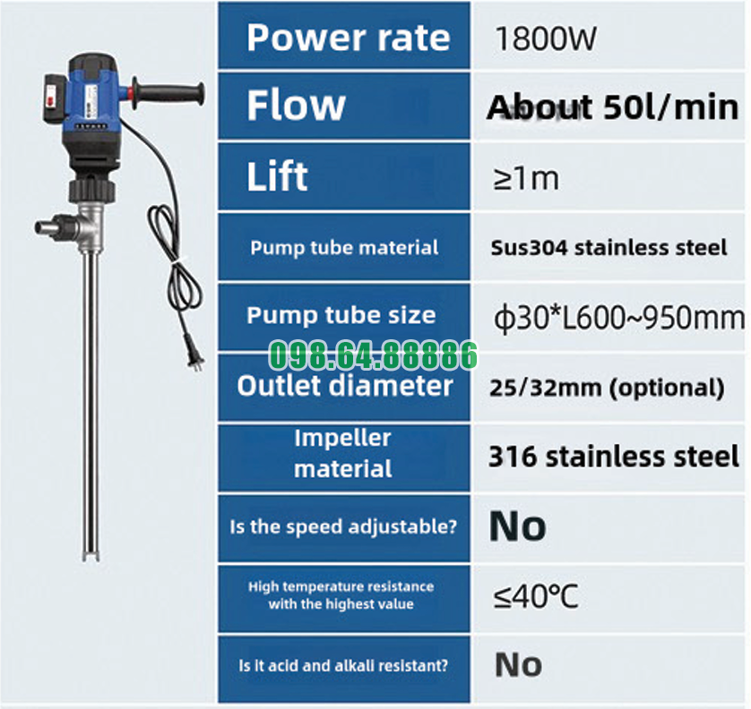 Khả năng vận hành trong môi trường khắc nghiệt của Máy bơm chất lỏng cắm điện JDT-1800W-30SUS304